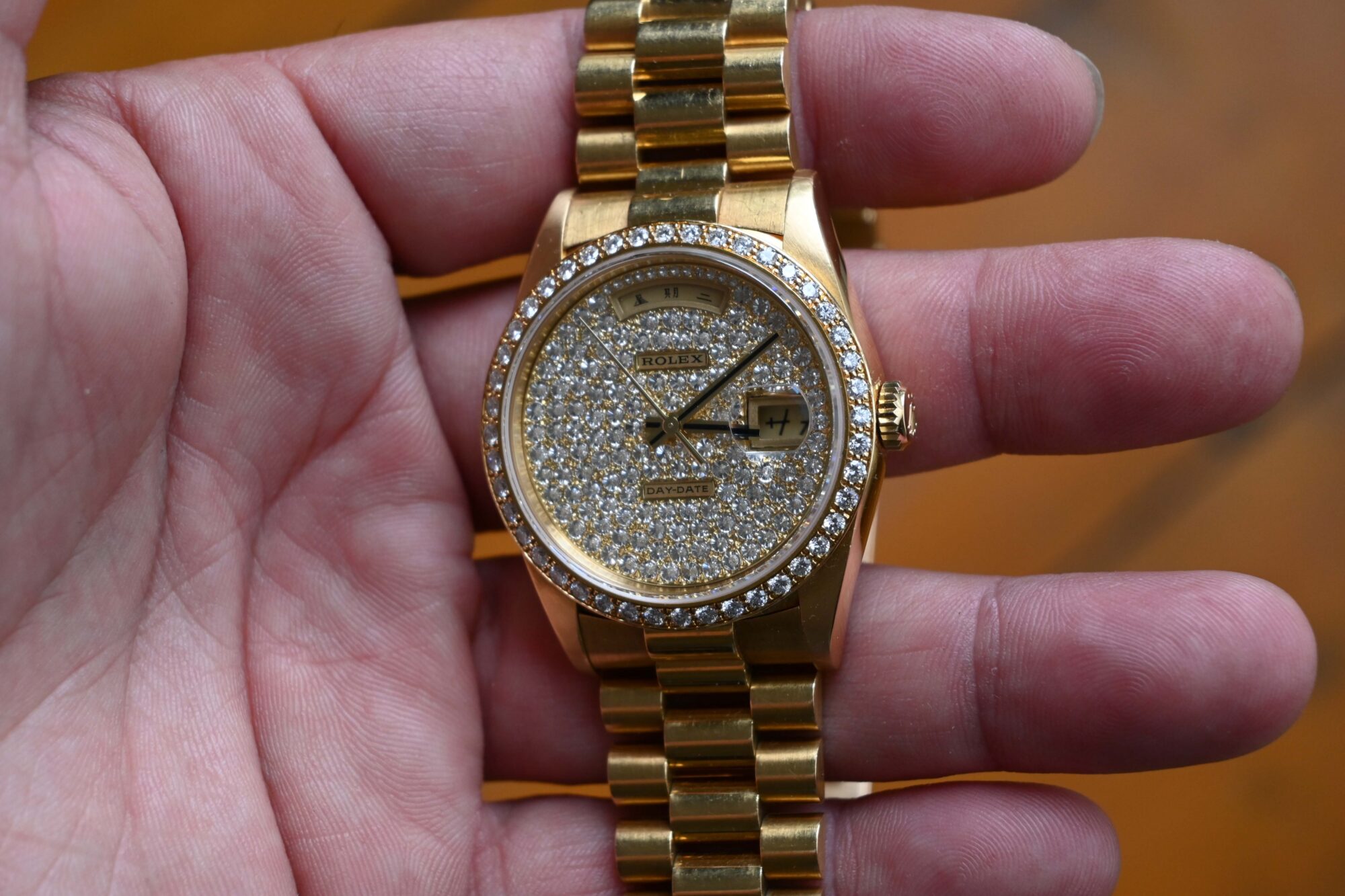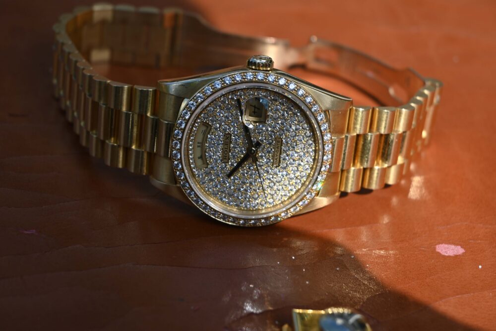 Rolex 18348 day date 36mm pave diamond dial -3